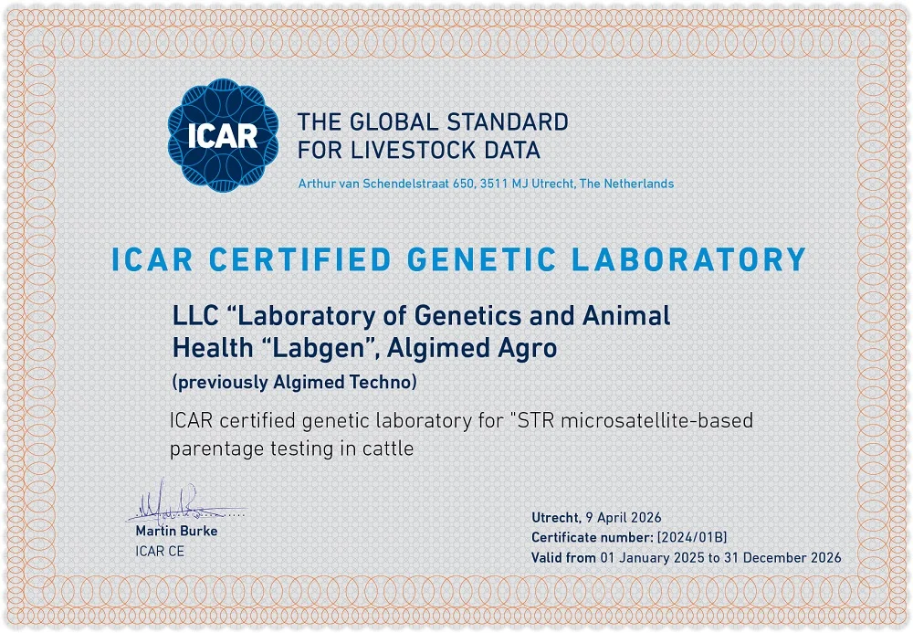 У нас важная новость, которой мы хотим поделиться. Наша Лаборатория генетики ЛАБГЕН прошла международную сертификацию ICAR и получил статус официальной генетической лаборатории! Теперь мы можем проводить анализ происхождения крупного рогатого скота по STR-микросателлитным локусам в полном соответствии с мировыми стандартами.